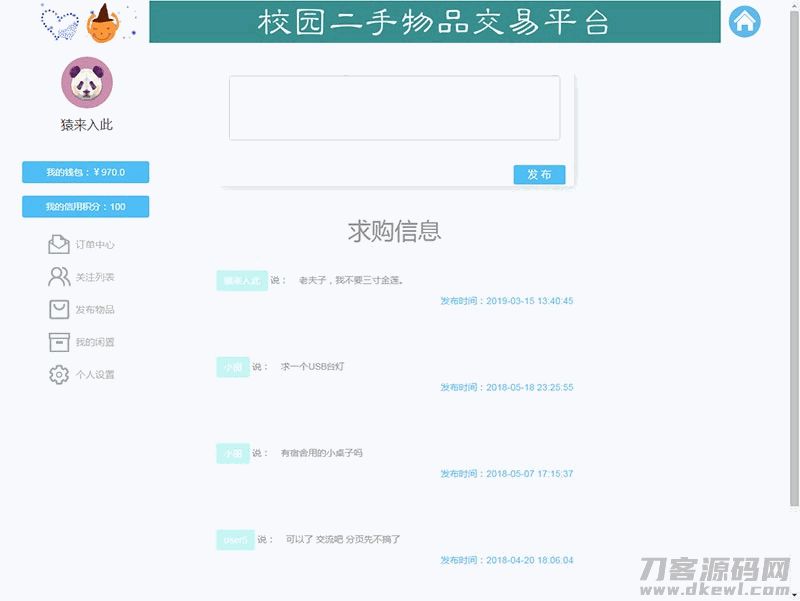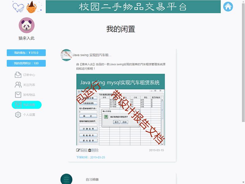 4爷免费源码网 » jsp+ssm+mysql校园二手市场交易平台源码 带视频教程
