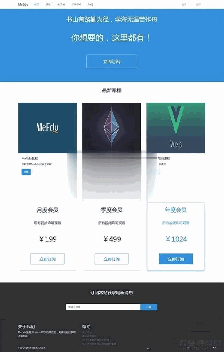 4爷免费源码网 » Laravel开发MeEdu在线点播网站源码 知识付费应用系统源码