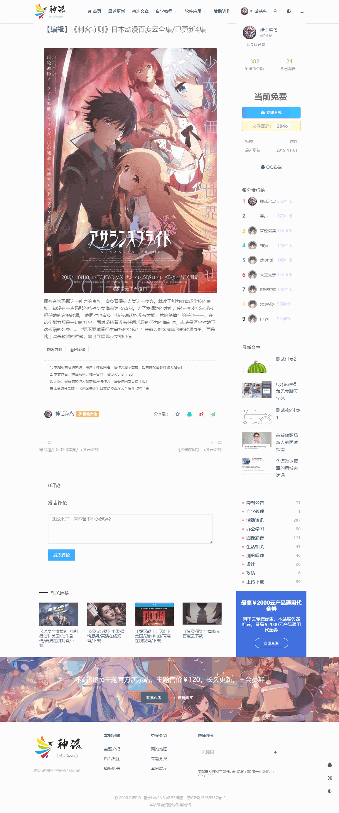 LaySNS模板仿RiPro日主题素材源码资源下载响应式CMS模板