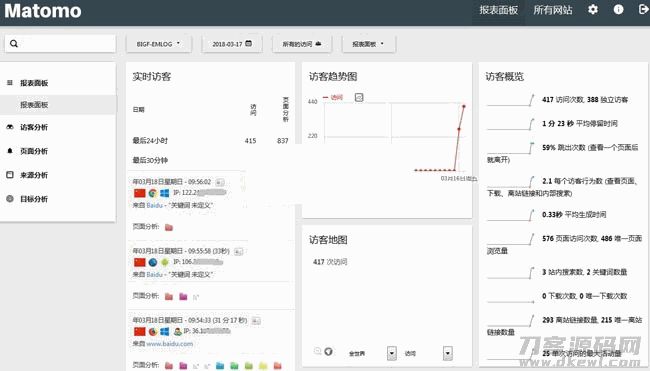 matomo网站统计系统(之前叫Piwik)是一套基于PHP5+MySQL技术构建的开源网站访问统计系统,前身是phpMyVisites。Piwik可以给你详细的统计信息,比如网页浏览人数,访问最多的页面,搜索引擎关键词等等流量分析功能。此外,它还采用了插件扩展及开放API架构,可以让用户根据 自已的实际需求创建更多的功能。