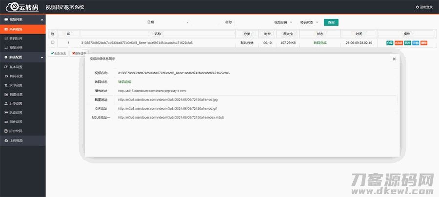 4爷免费源码网 » PHP双码率视频云转码服务系统源码 m3u8切片秒切