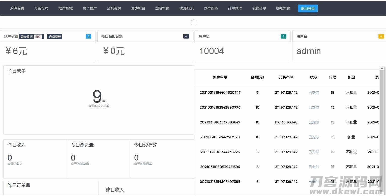 访问域名–》输入账号admin 密码dkewl.com登录后台