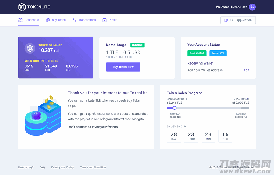这款全功能面板用于管理您的ICO / STO的代币销售,帮助加密货币机构/初创公司推出他们的ICO,销售他们的代币,并从投资者那里获得贡献。