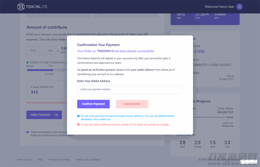 如果你打算开展crypto/区块链业务,那么你可能需要运行ICO / STO / IEO来销售你的代币,筹集资金或获得投资,使你的项目/产品取得成功,这款程序就可能比较适合你了。这个ICO管理程序能帮助您的贡献者轻松购买您的代币。您可以通过每个阶段管理您的代币数量、软帽/硬帽、代币价格、奖金,并设置自动适用于购买过程的支付钱包地址。