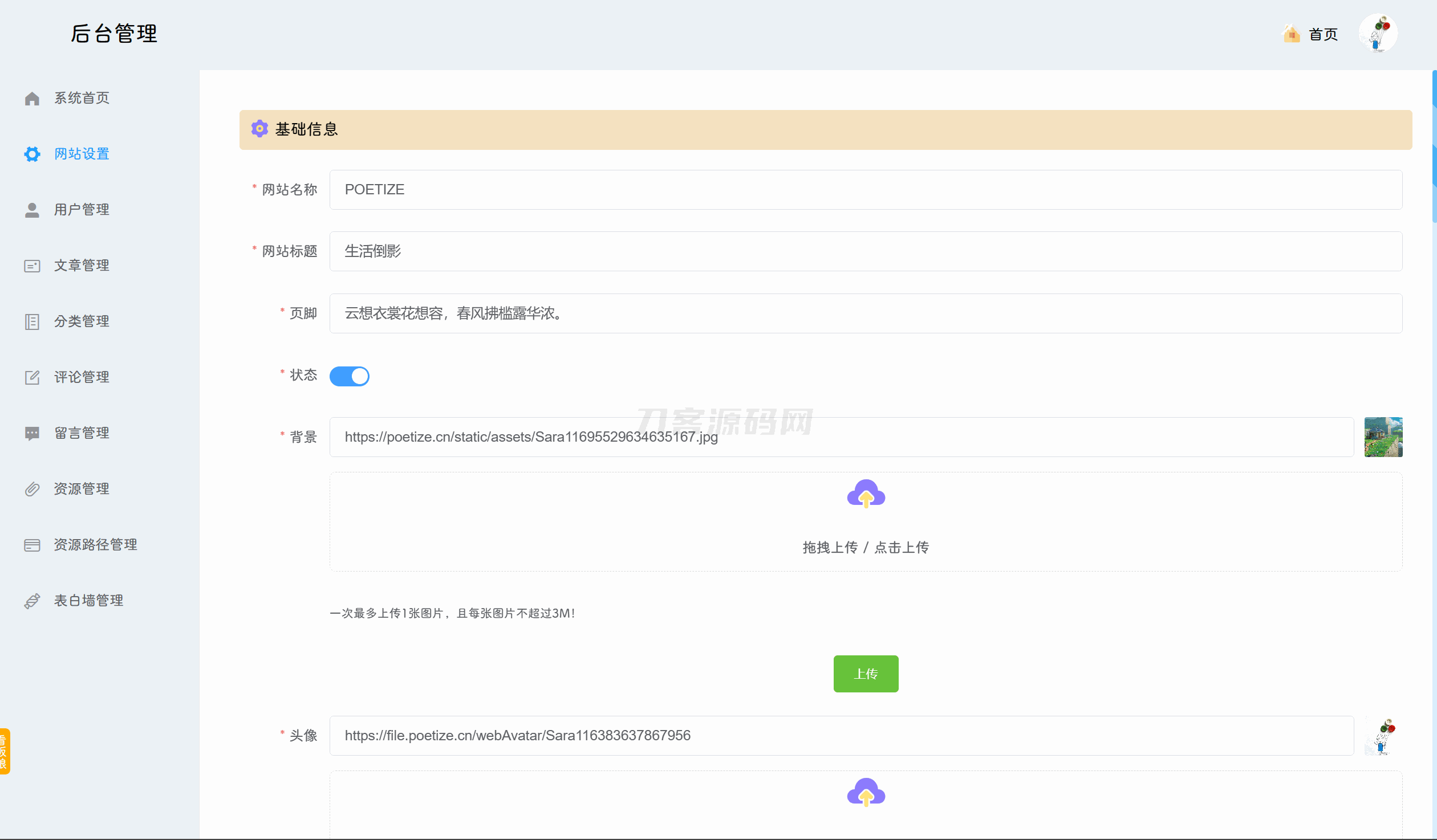 4爷免费源码网 » POETIZE个人博客系统源码 | 最美博客