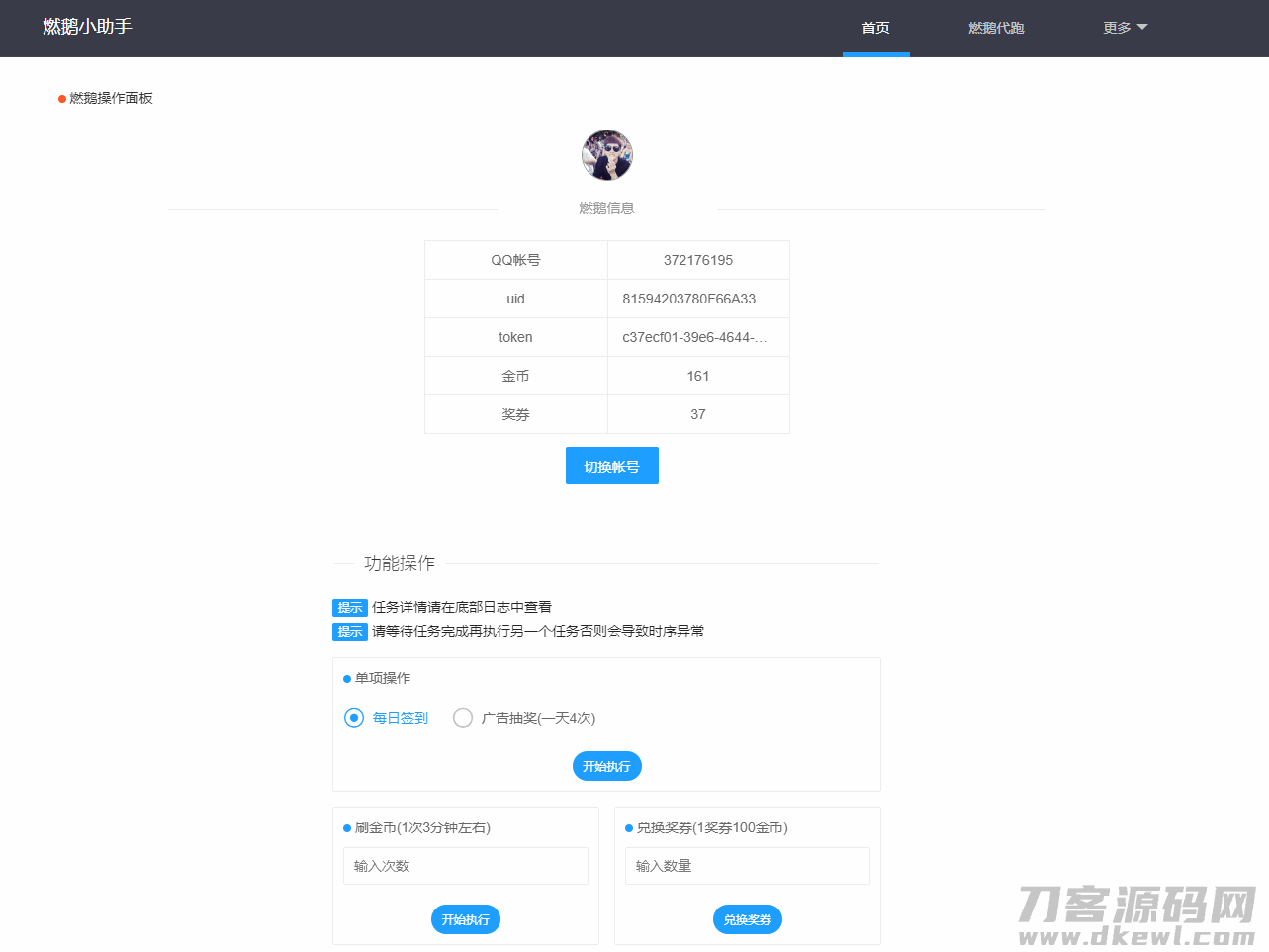 4爷免费源码网 » QQ燃鹅小助手自动抽奖网站源码