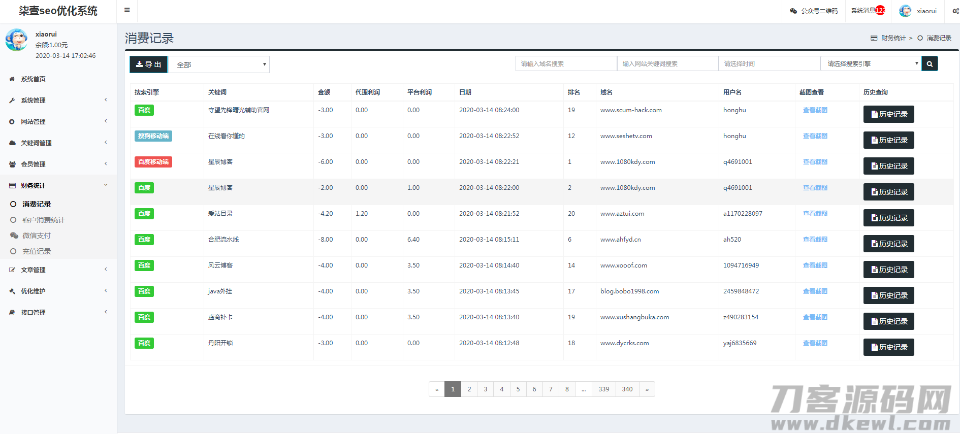 SEO按天扣费系统源码/SEO计费系统/关键词计费扣费系统/关键词排名查询系统