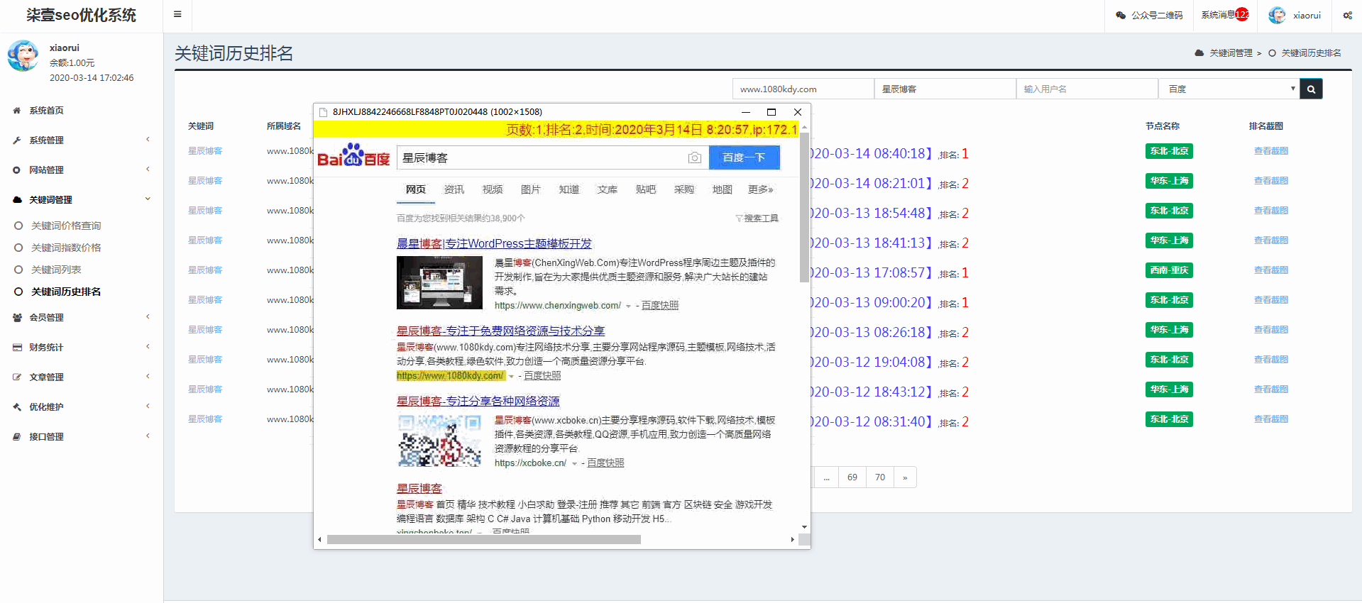 4.关键词查价。系统支持手动输入价格与根据关键词指数查价两种模式,其中根据关键词指数查价,需要我们在后台输入指数范围,我司扣费系统调用的站长之家的关键词指数,在指数上面和百度、360等官网数据有出入,请慎用;5.关键词排名。做优化的朋友,应该都知道,做自然搜索都有一个异地排名情况,我们经常出现排名查不到、排名查不准的情况,市面上的大多扣费系统都是采用的单节点查询技术或者调用站长之家/5118等查询接口,普遍现象都是查不闪,而我司采用多节点排名查询技术,目前在全国部署了七个节点,在排名查询比站长之家、5118及其他扣费系统要准确很多倍,且我们提供排名快照服务,如果客户网站在搜索结果前2页,我们系统将自己截取当前排名快照,对客户更加有说服力;6.公众号查询。系统支持非认证订阅号、服务号等查询网站排名,只需要在公众号对话框内输入网站域名,公众号会自动将网站排名情况反馈给用户。下步将进一步完善公众号功能,如:余额不足提醒,关键词排名达标推送等功能;