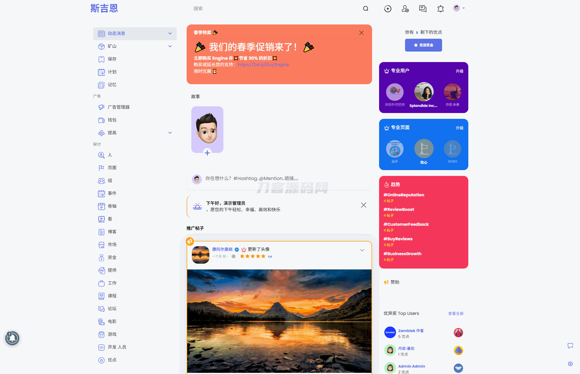 4爷免费源码网 » Sngine 4.0.4海外社交平台PHP源码 – 多语言支持短视频和博客订阅