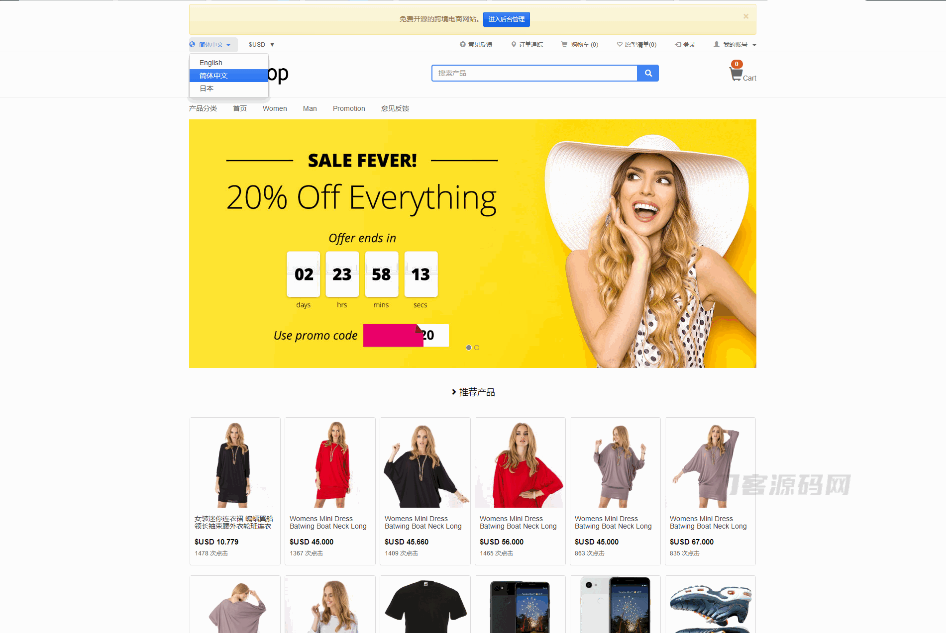 StrongShop 是一款免费开源的跨境电商商城网站。