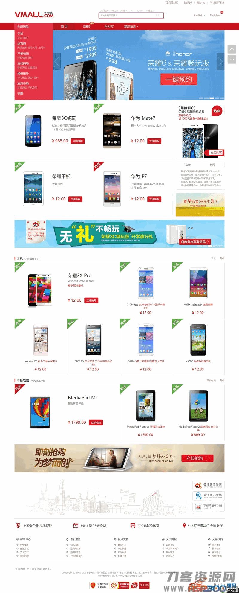 ThinkPHP仿华为商城源码带支付宝接口 商品首页展示;用户意见;商品分类列表;订单生成 在线付款