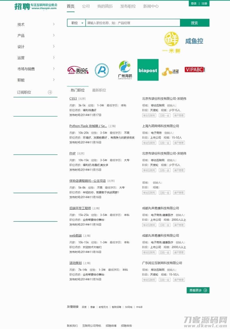 4爷免费源码网 » Thinkphp仿拉勾网人才招聘网站源码