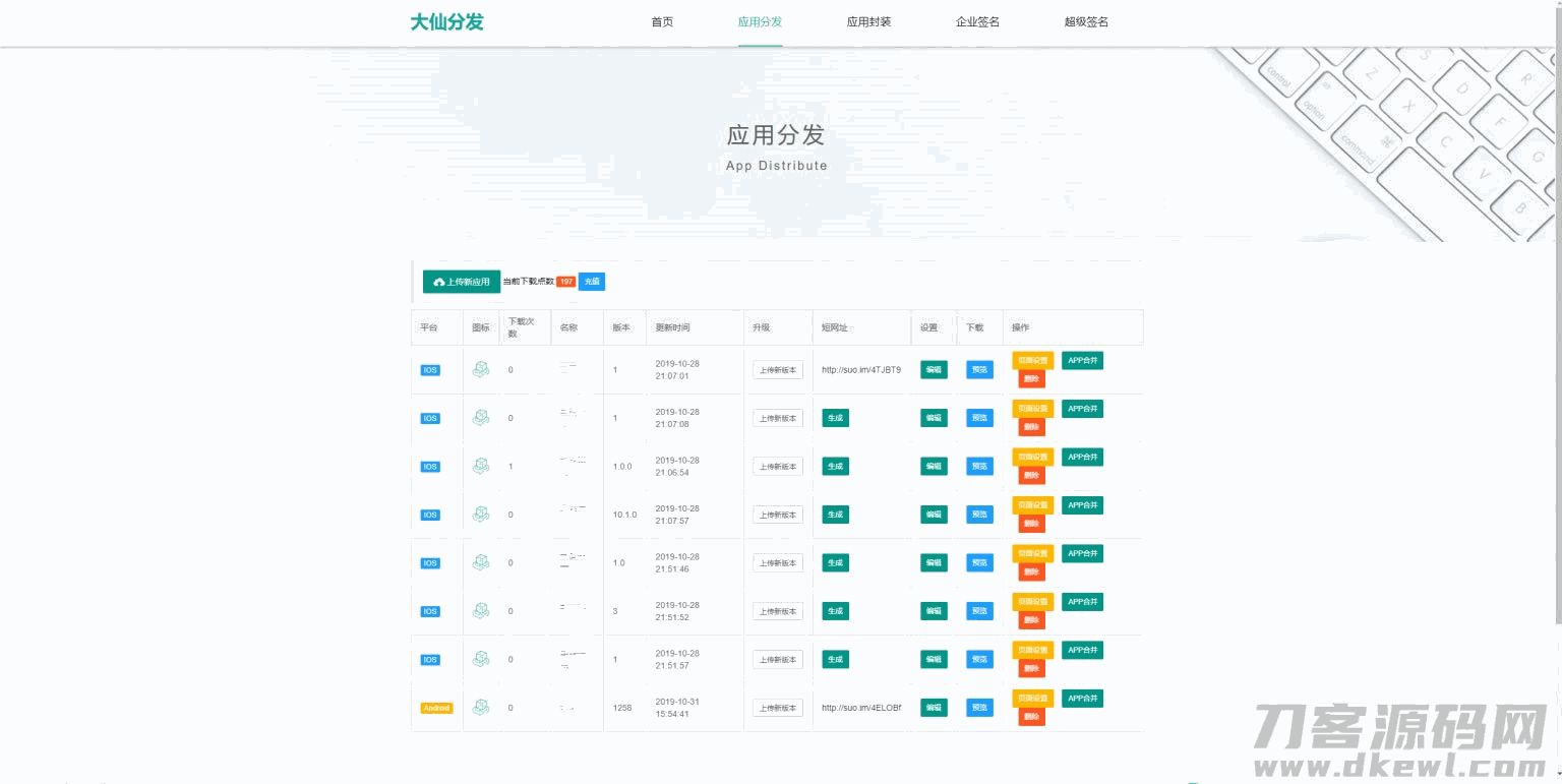 Thinkphp内核app分发系统大仙分发平台源码第一个版本