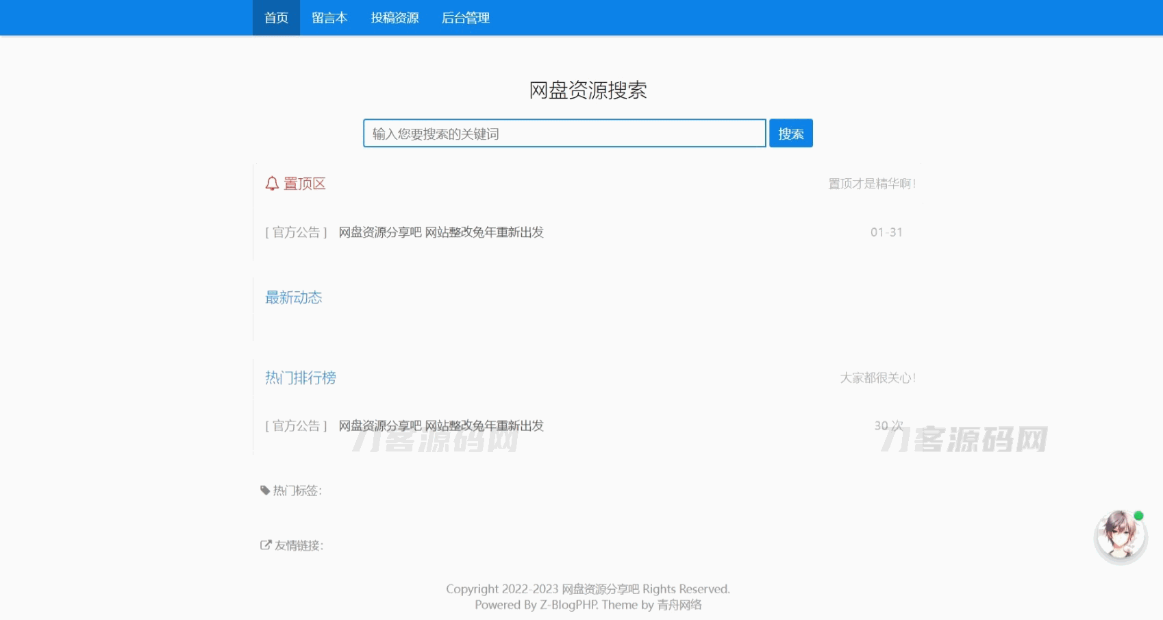 4爷免费源码网 » Z-Blog随心轻蓝单栏博客清爽简洁主题